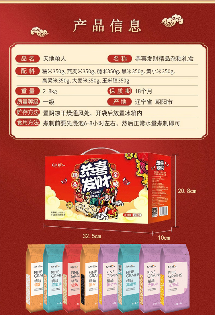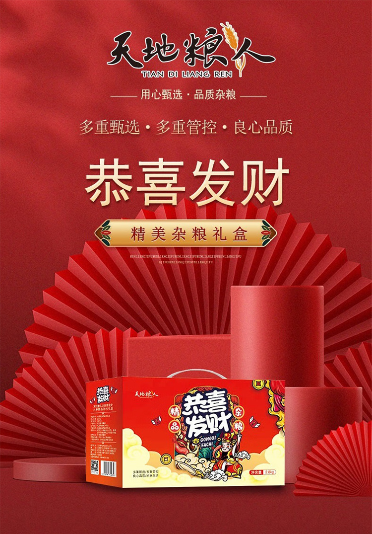 天地粮人杂粮礼盒腊八粥礼盒杂豆组合公司团购福利腊八送礼礼盒 恭喜发财八种精品杂粮礼盒2.8kg