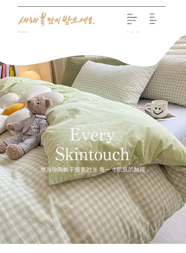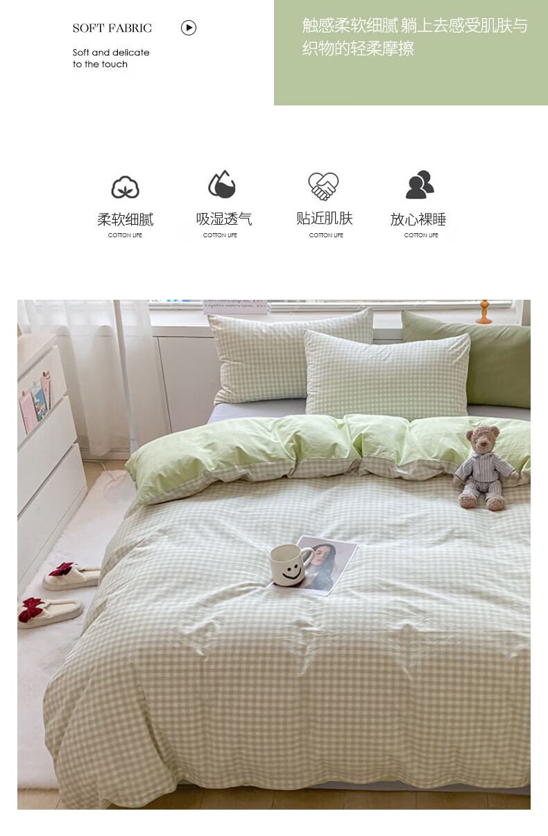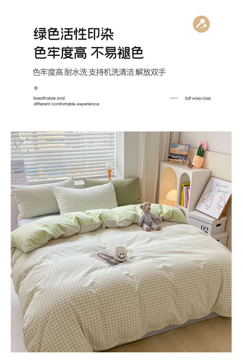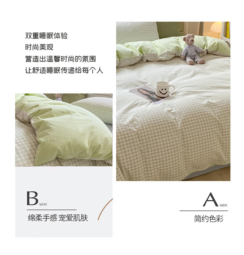 无印良品亲肤双拼印花四件套