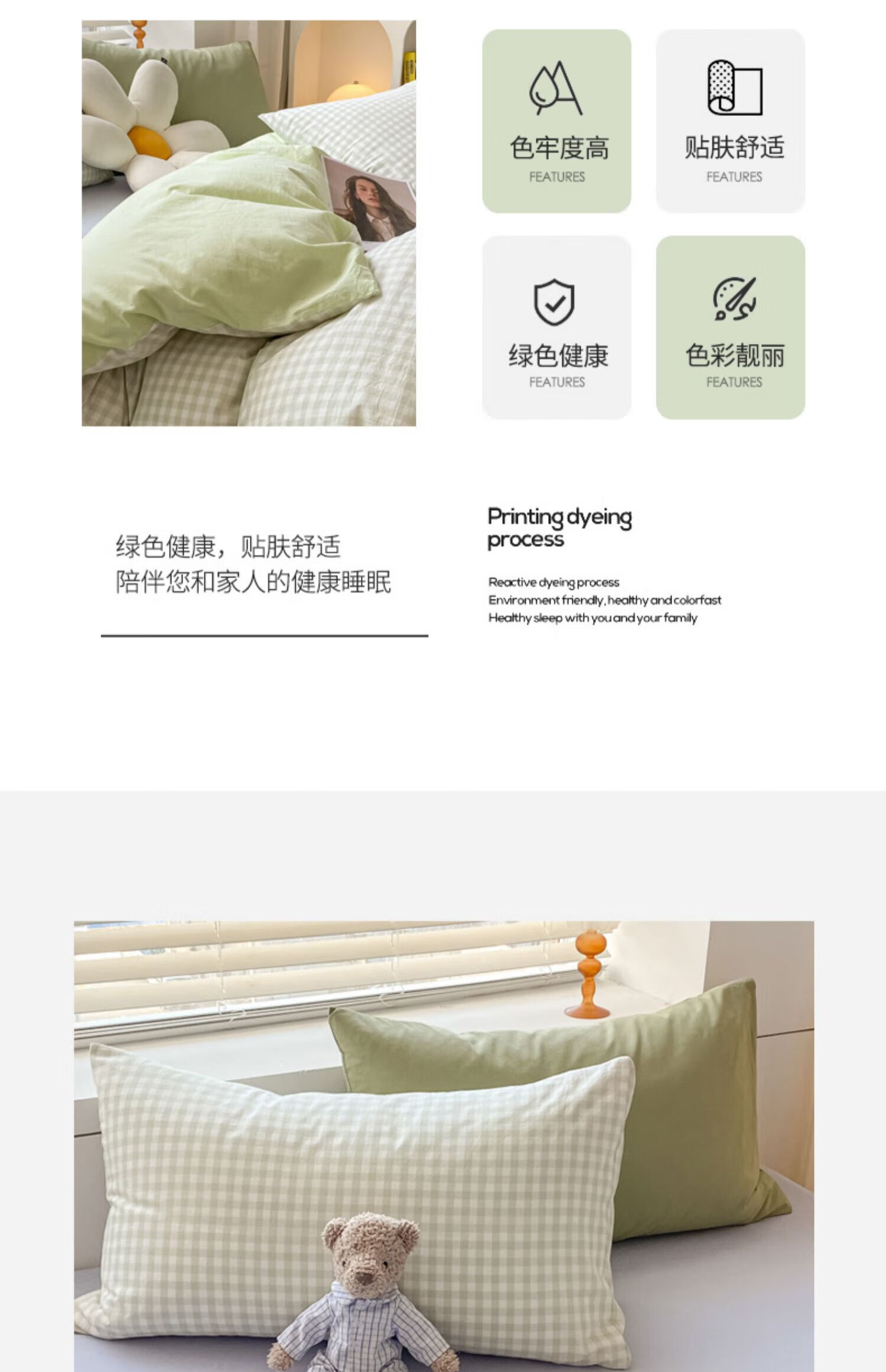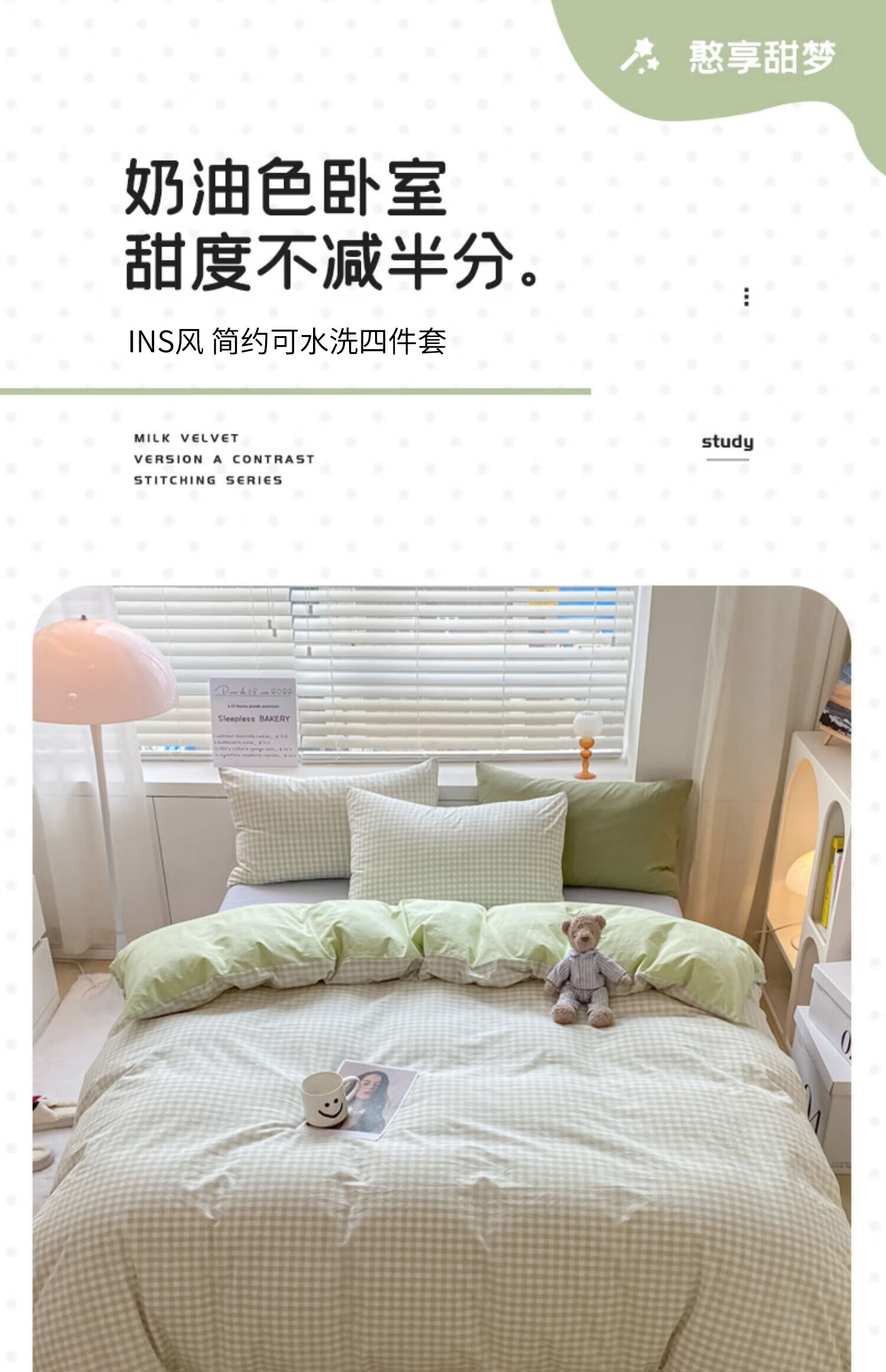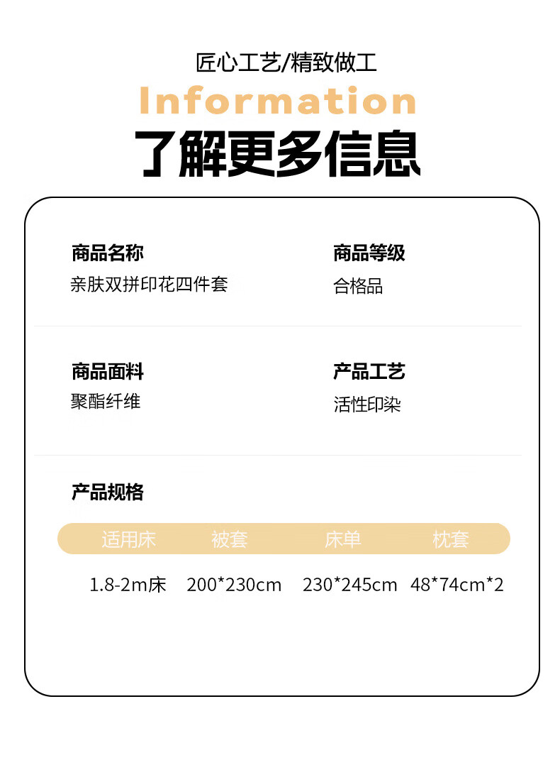 无印良品亲肤双拼印花四件套