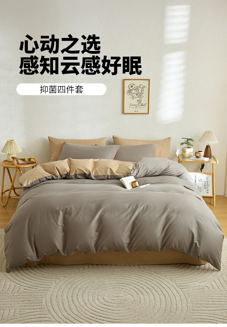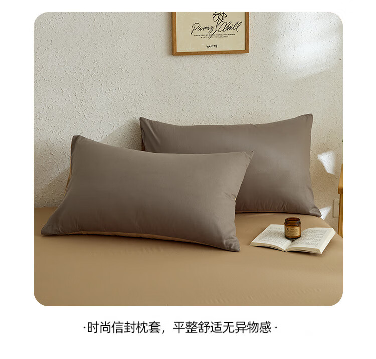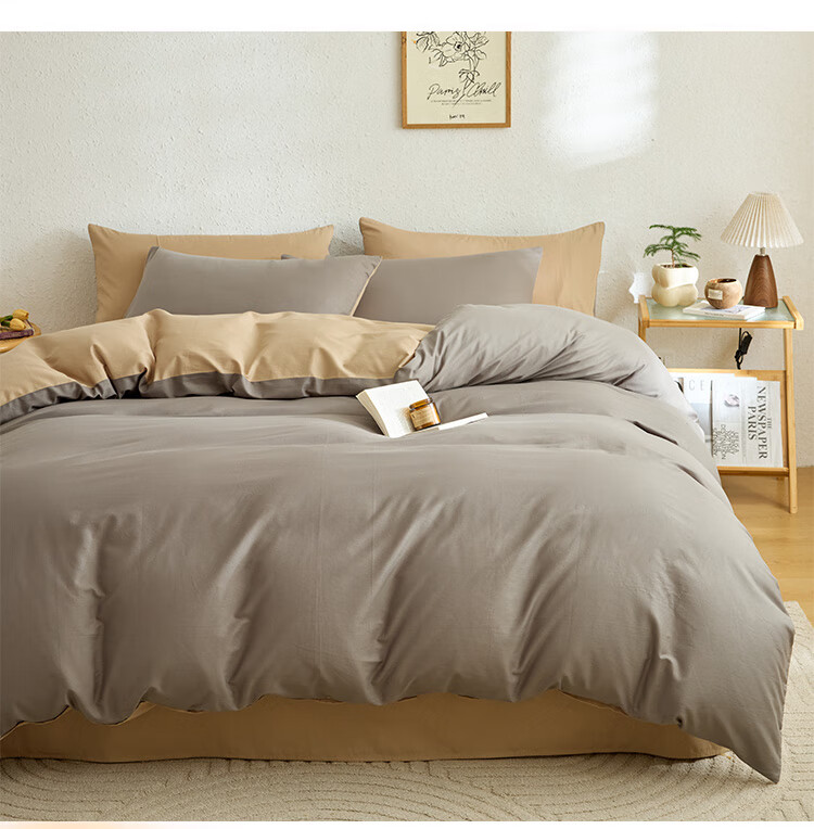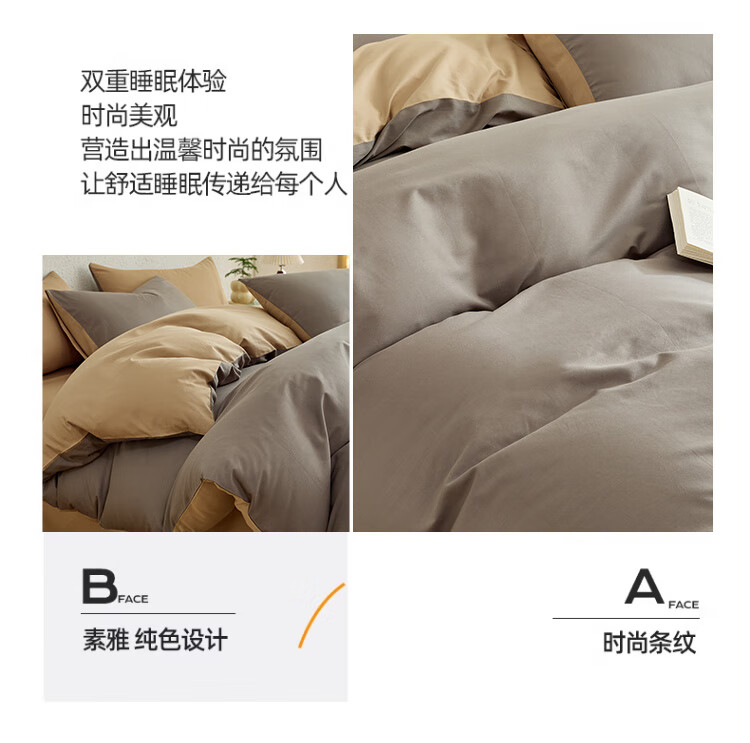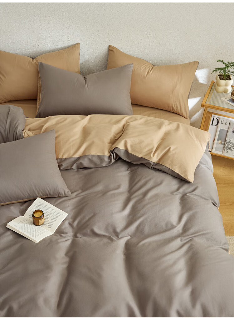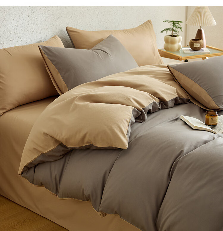 无印良品透气水洗棉四件套 咖棕拼卡其 1.5/1.8 床单款 四件套-被套2*2.3m