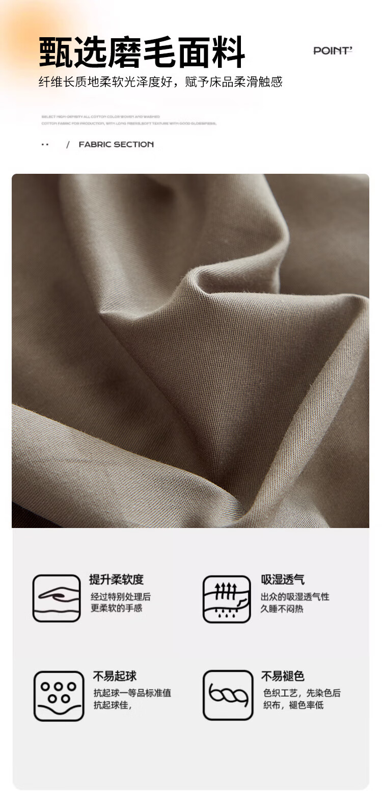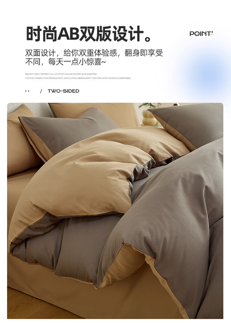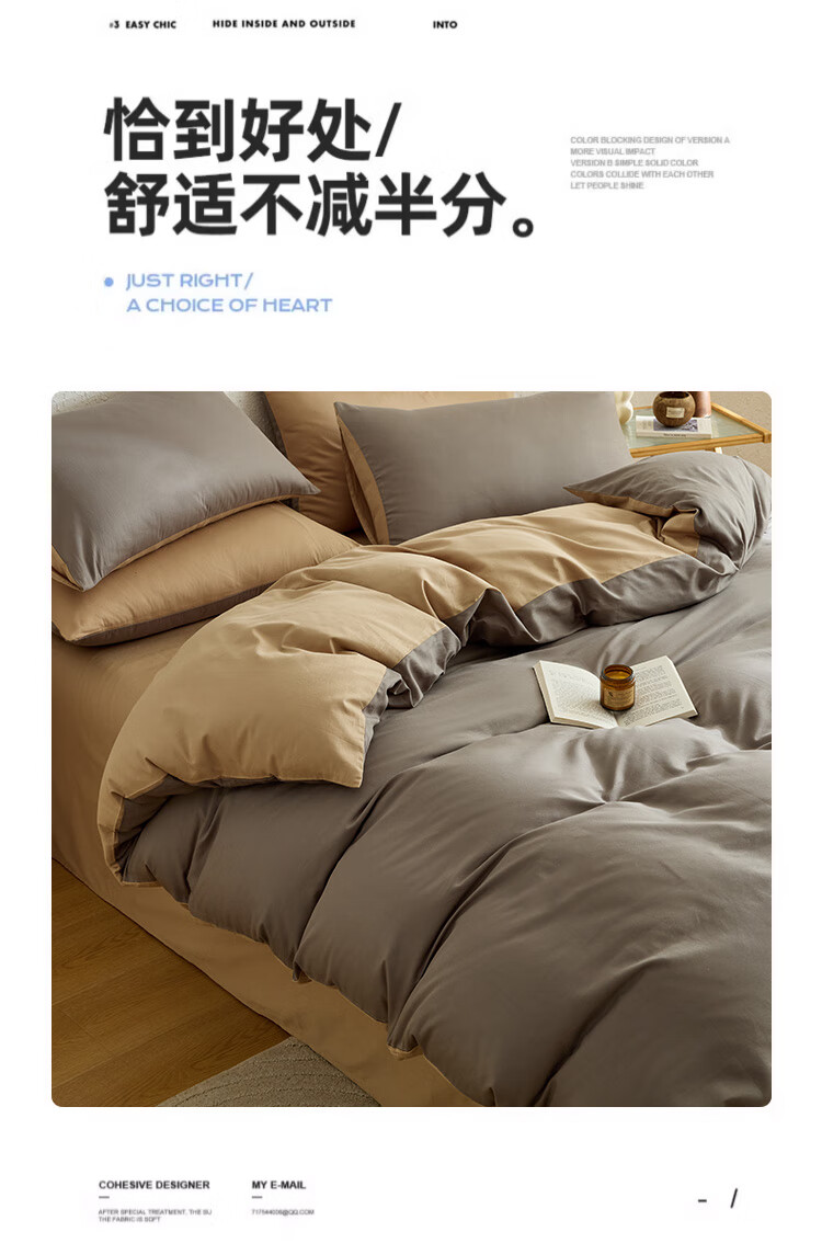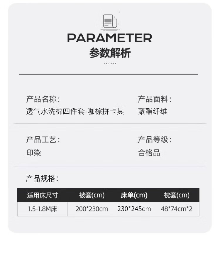 无印良品透气水洗棉四件套 咖棕拼卡其 1.5/1.8 床单款 四件套-被套2*2.3m