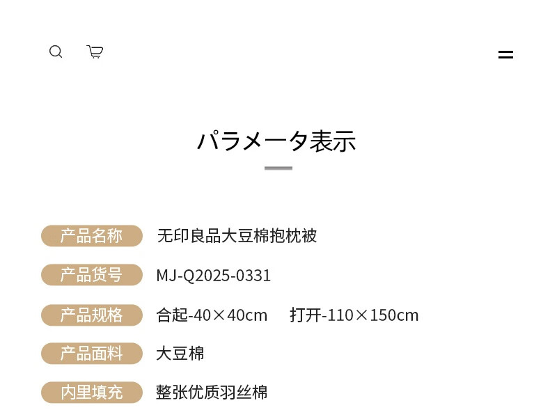 无印良品 大豆棉抱枕被 110cm*150cm咖格