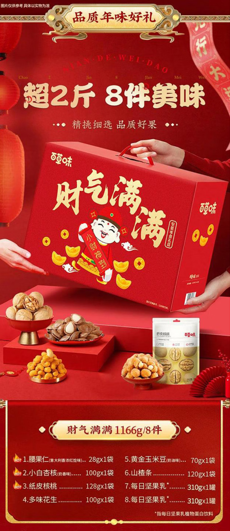 百草味坚果零食礼盒-1166g(财气满满 红色特价款)