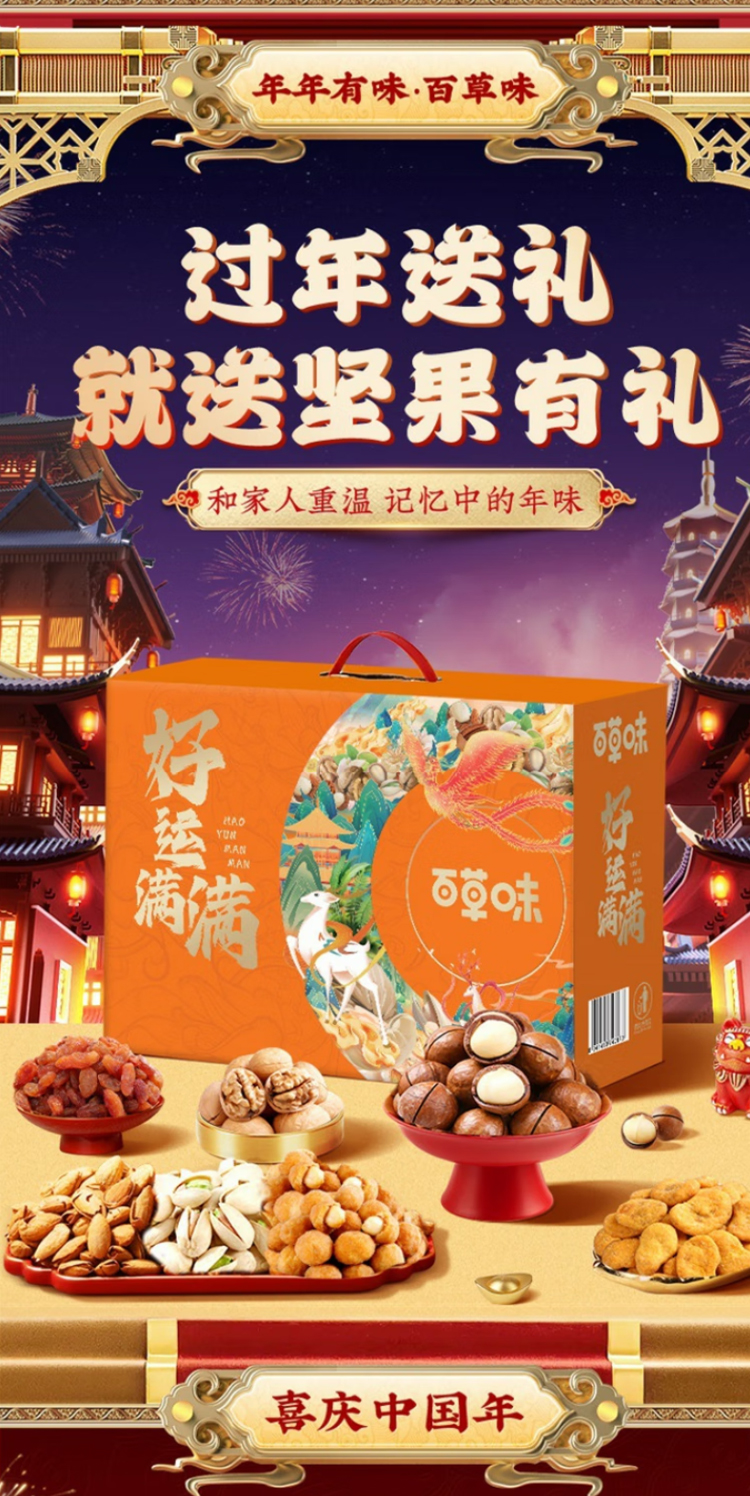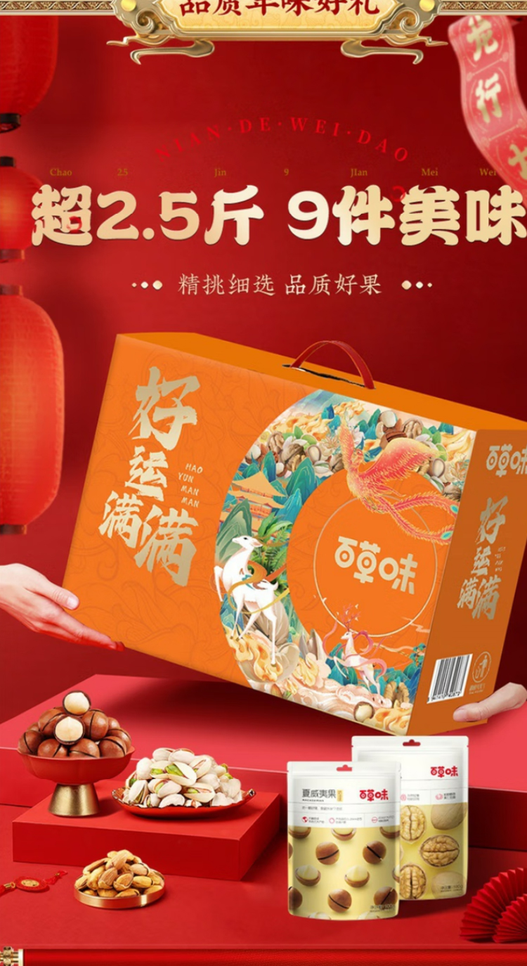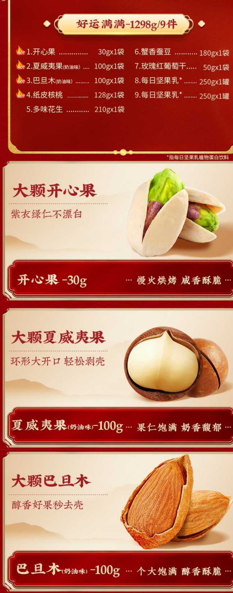 百草味百味混合每日坚果好运满满礼盒1298g综合礼品年货休闲长辈送礼 好运满满礼盒1298g 原味