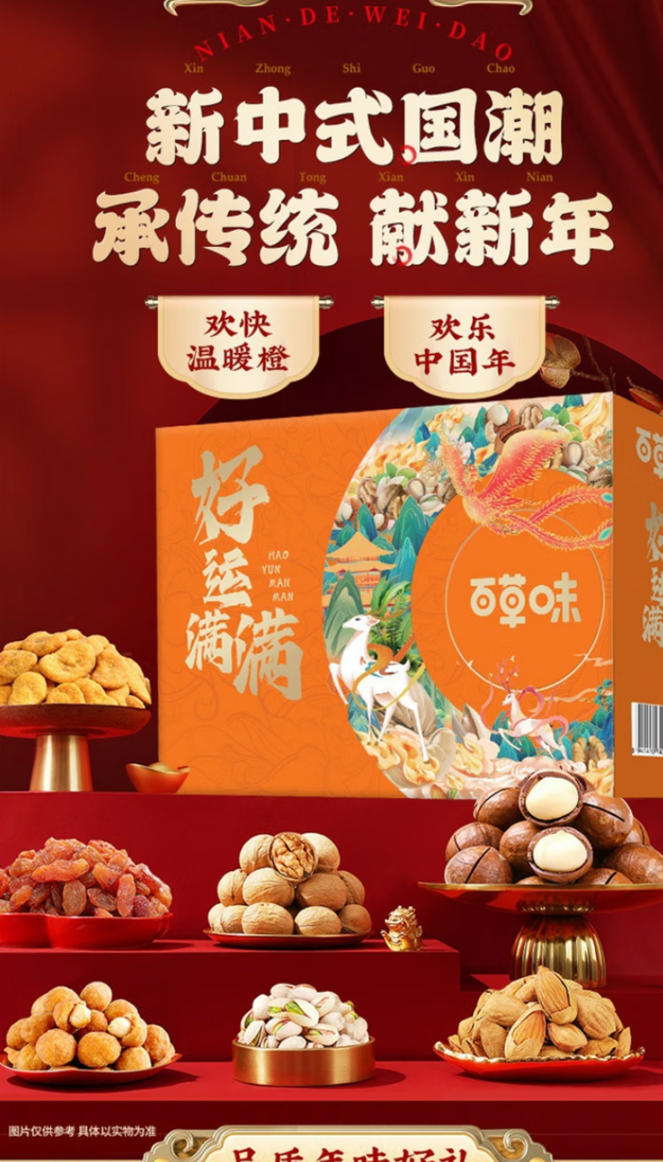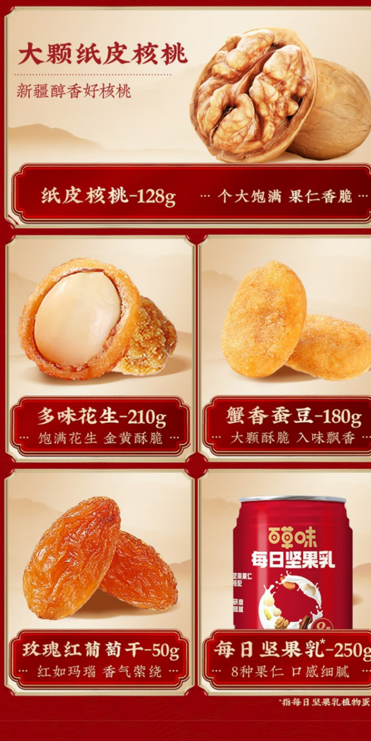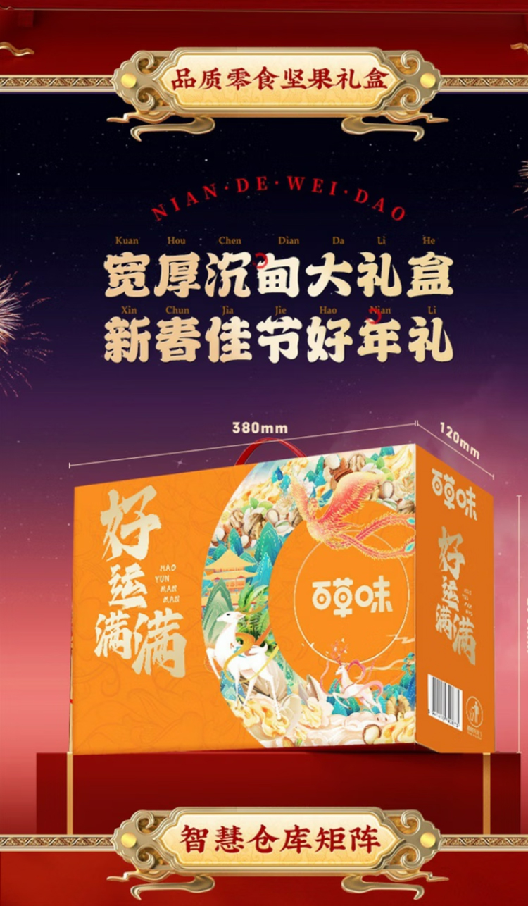 百草味百味混合每日坚果好运满满礼盒1298g综合礼品年货休闲长辈送礼 好运满满礼盒1298g 原味
