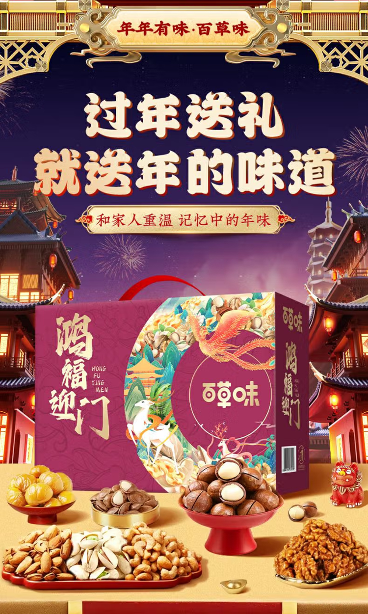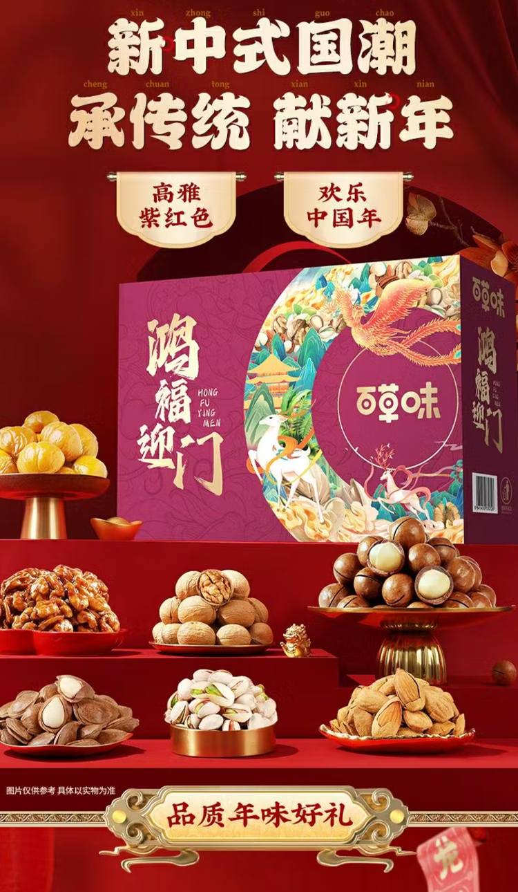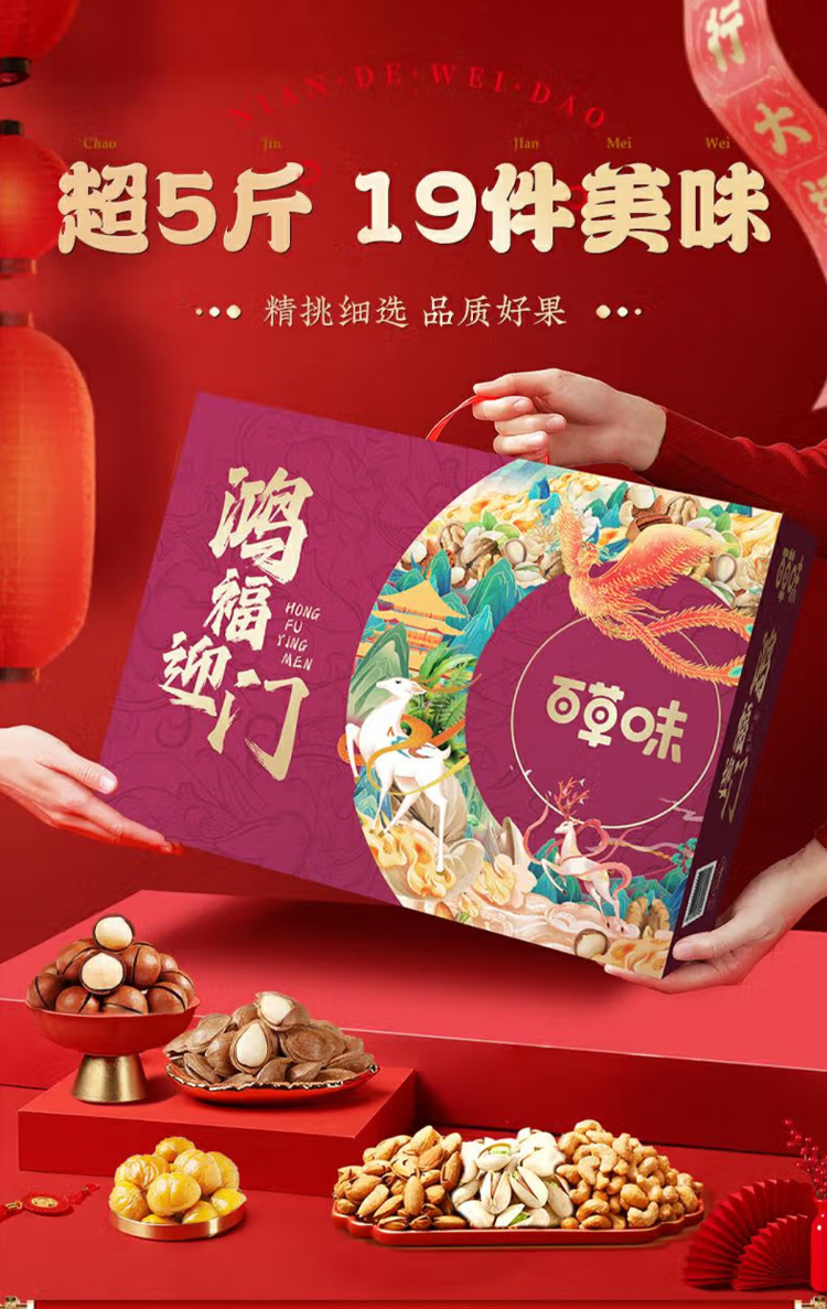 百草味坚果礼盒鸿福迎门2634g腰果巴旦木干果炒货中秋节礼品福利 鸿福迎门2634g